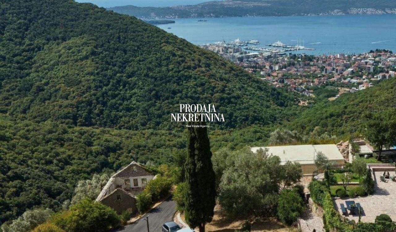 Tivat, Gornja Lastva – Authentic Stone House with Land and Sea View for Sale This charming authentic stone house is located in the peaceful village of Gornja Lastva, above Tivat.The property enjoys a beautiful panoramic view of the Bay of Kotor and Porto Montenegro, surrounded by lush greenery and timeless Mediterranean architecture. This traditional stone