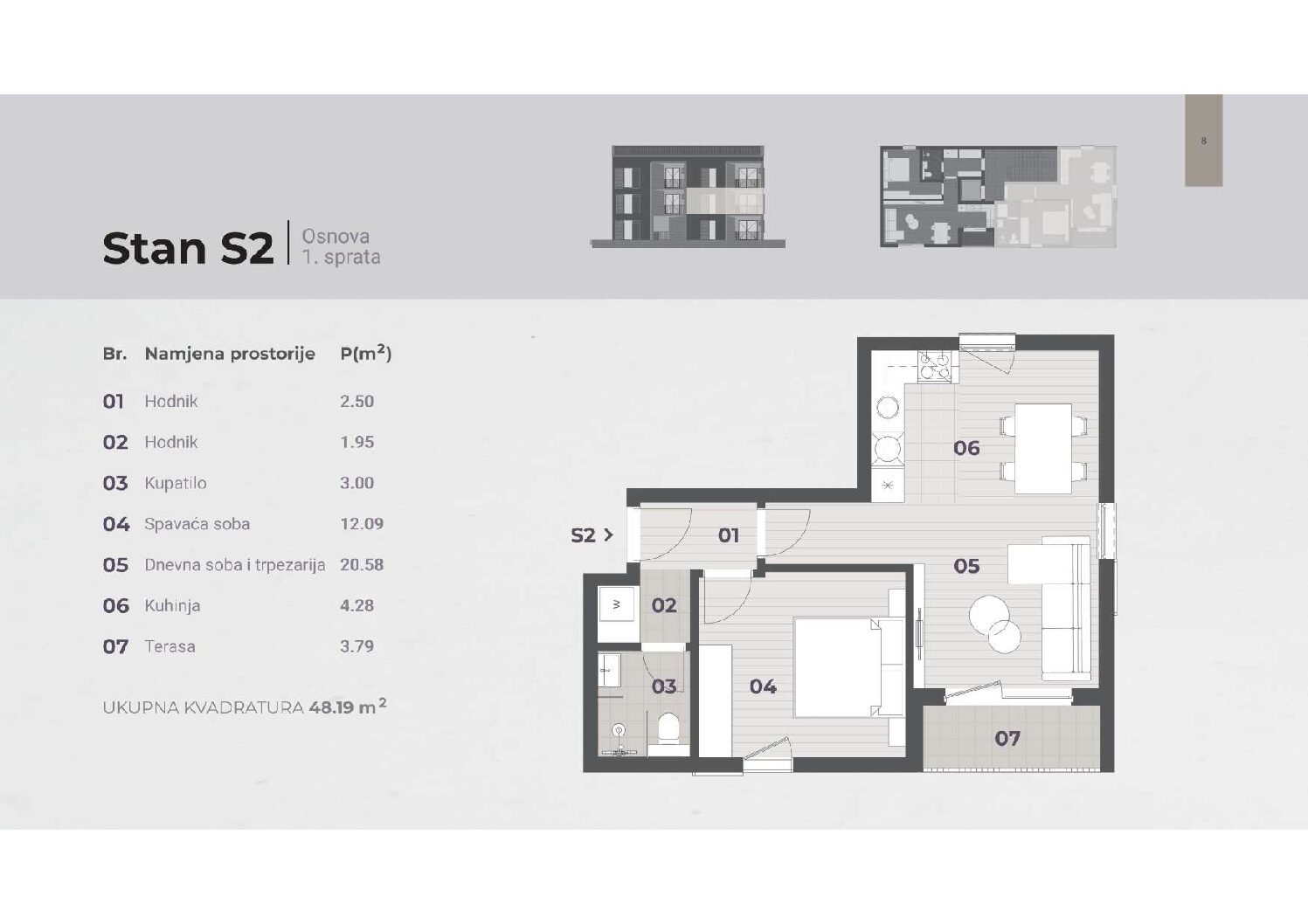 - Površine: od 48,2 m² do 51,3 m²